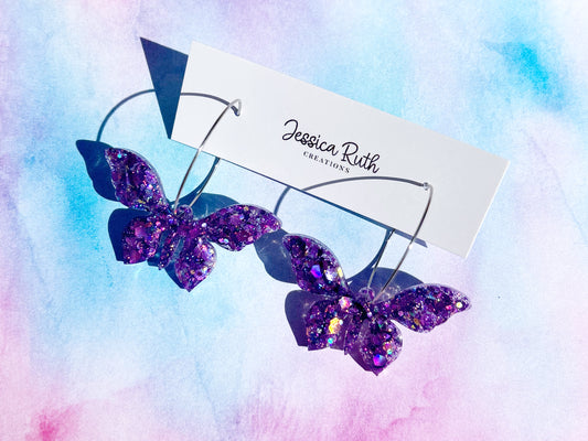 Butterfly Hoop Dangle Earrings - Multiple Color Options!
